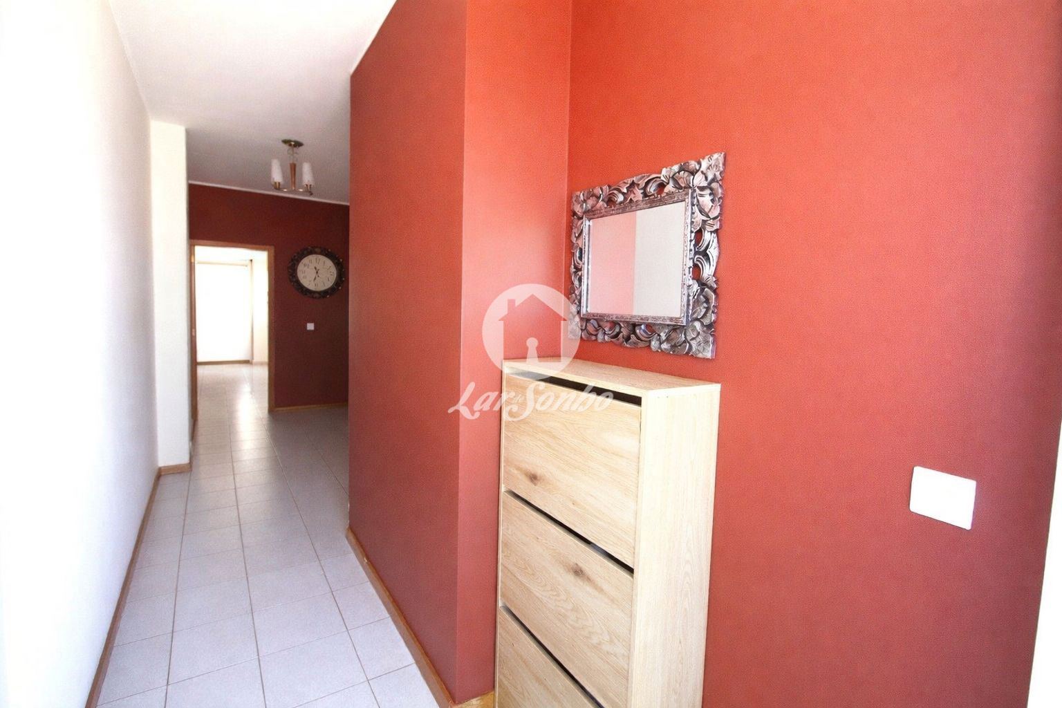No interior, encontramos uma sala ampla, perfeita para momentos de convívio, e uma cozinha totalmente equipada, proporcionando praticidade no dia a dia. Os quartos são espaçosos, sendo que dois deles têm acesso direto à varanda, permitindo-lhe desfrutar da paisagem envolvente. Dispõe ainda de duas casas de banho completas e um hall de entrada amplo, que confere elegância ao espaço.