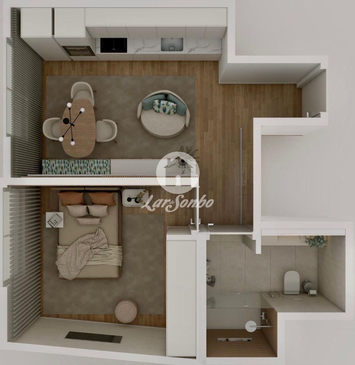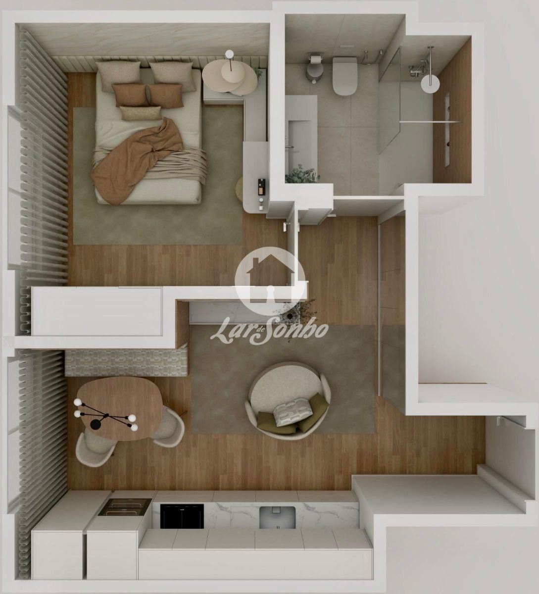 • Área bruta: 54 m² | Área útil: 40 m²