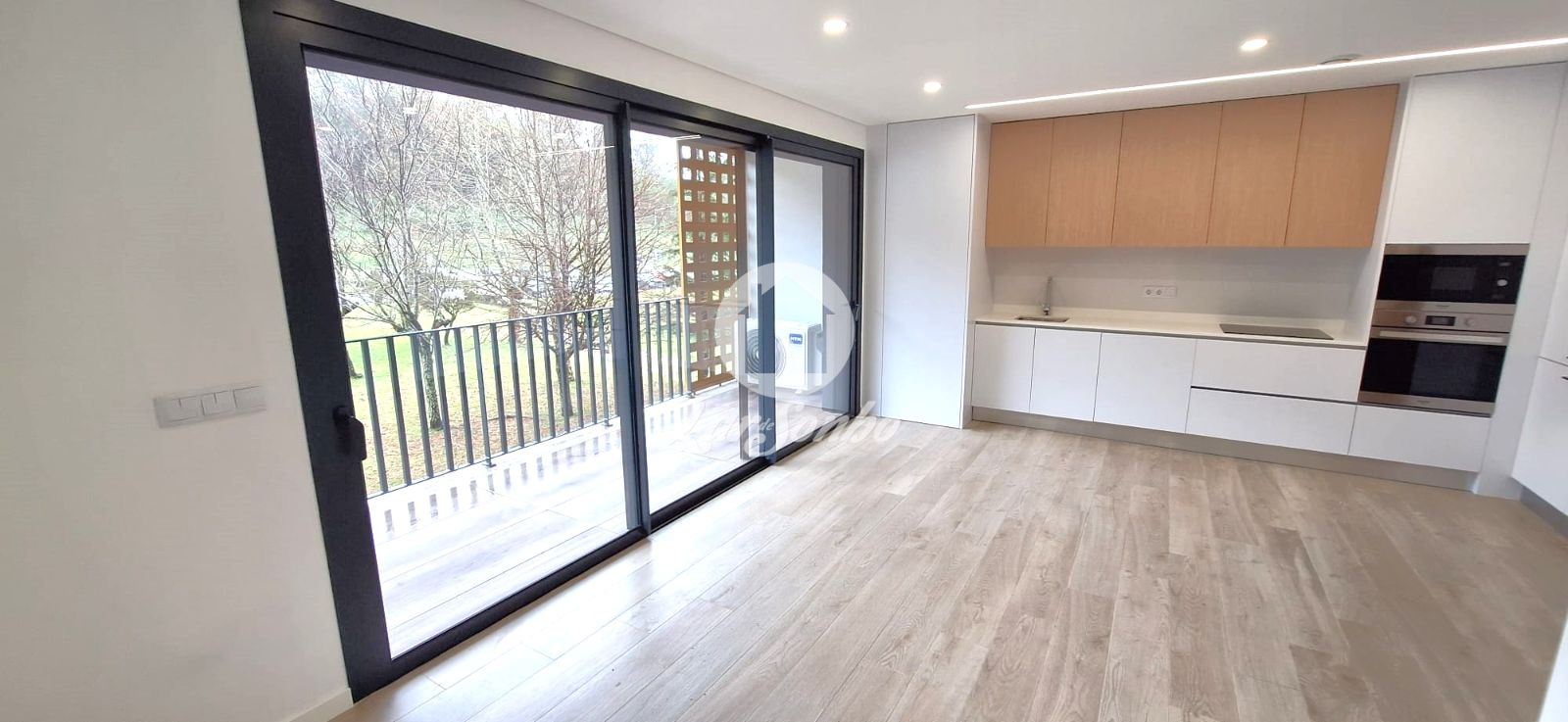 The flat consists of an open-plan living area, integrating a living room and modern kitchen, fully equipped with hob, oven, extractor fan, microwave and fridge-freezer. It also has a heat pump, air conditioning in all rooms and a CMV (Controlled Mechanical Ventilation) system, ensuring high thermal comfort and energy efficiency.