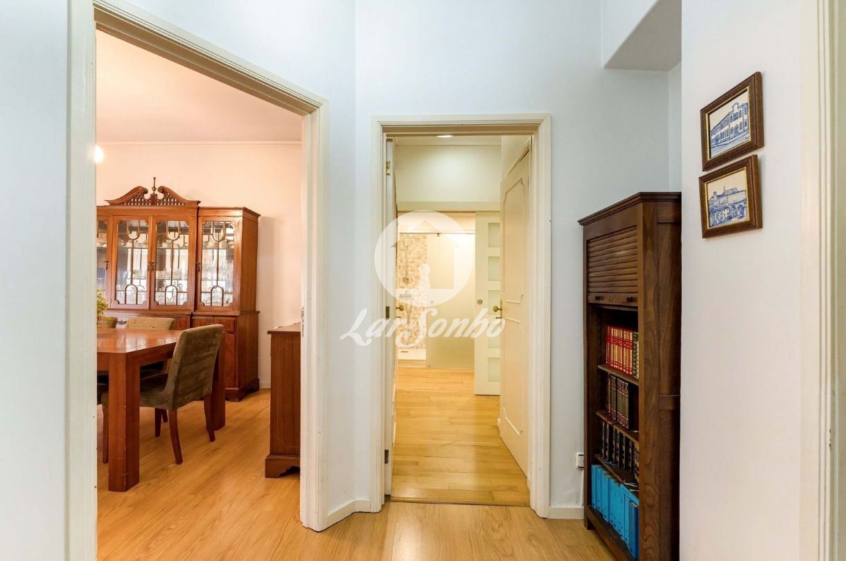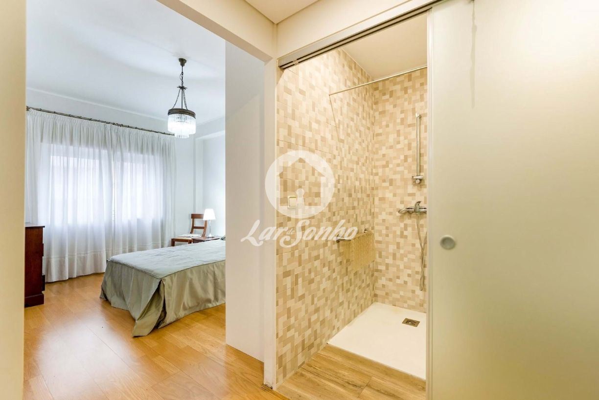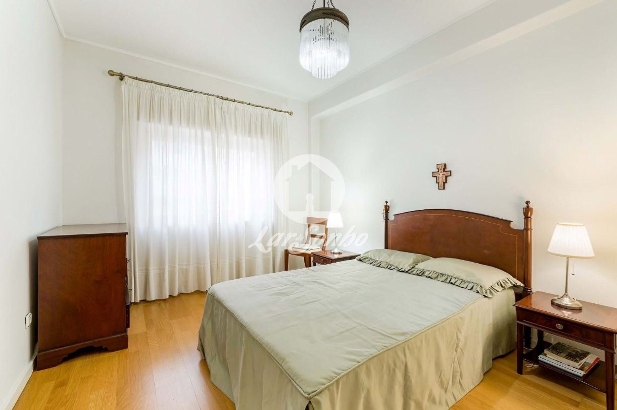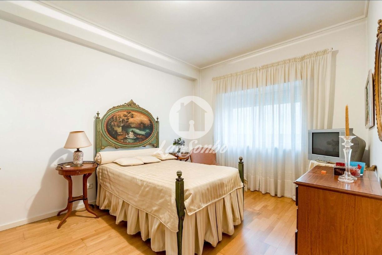Com 133 m² de área bruta, este luminoso apartamento oferece divisões amplas e bem distribuídas. A sala espaçosa, com lareira e acesso à varanda, convida a momentos de convívio e tranquilidade. A cozinha encontra-se totalmente equipada e conta ainda com acesso a lavandaria e despensa, proporcionando funcionalidade no dia a dia.