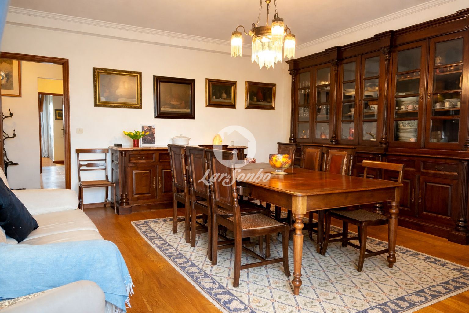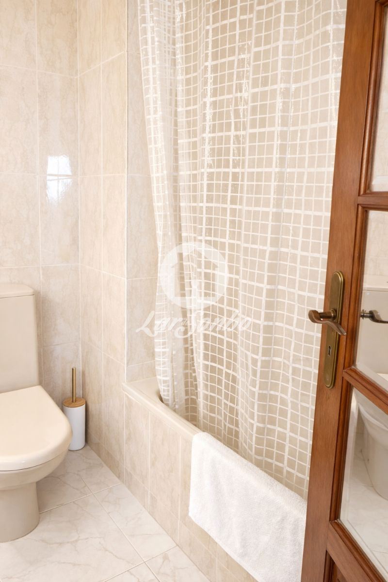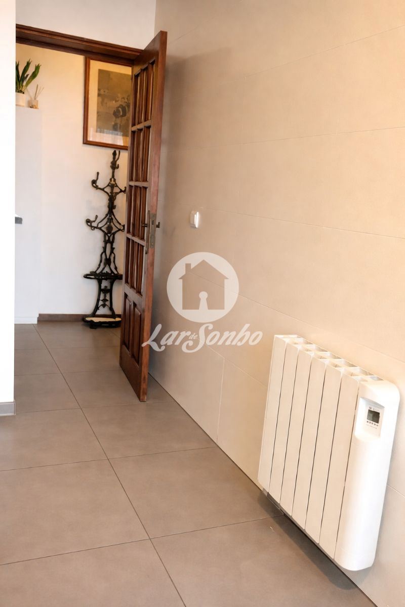 A sala ampla com lareira e recuperador de calor cria um ambiente acolhedor e convidativo, ideal para momentos de convívio. Para maior conforto durante todo o ano, o apartamento conta ainda com aquecimento em todas as divisões.