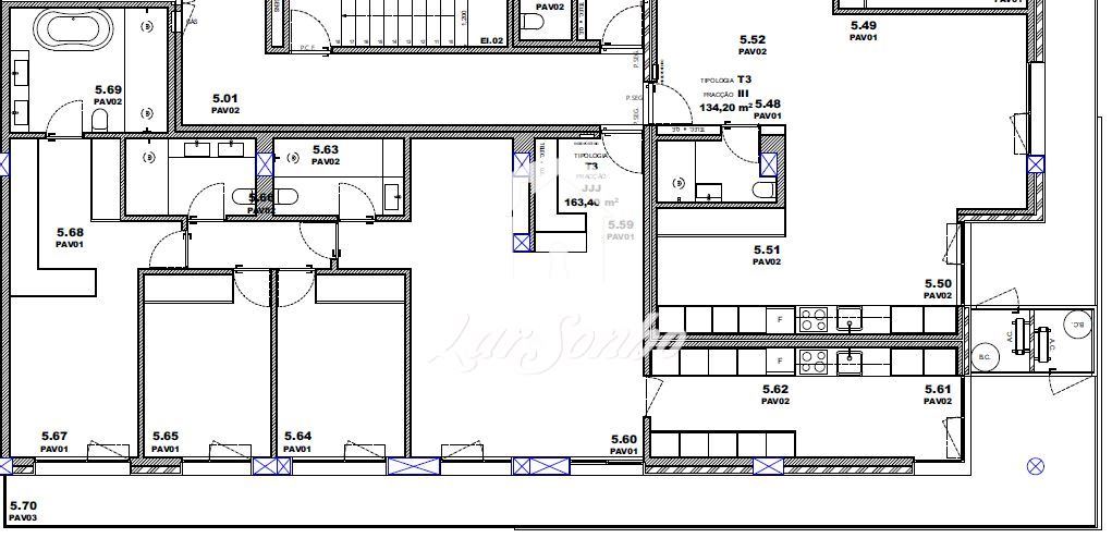 Apartamento T3 com 153m2 de área bruta de construção e dois lugares de garagem.