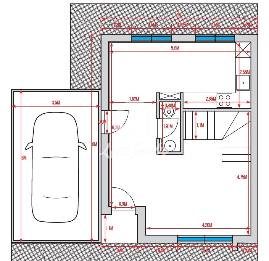 New, detached 2-bedroom villa with 118 square metres of gross construction area and 79 square metres of usable area.