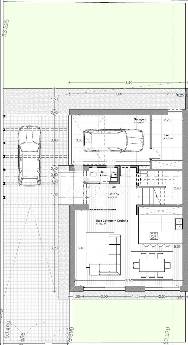 No rés-do-chão, destaca-se a ampla sala de estar integrada à cozinha em open space, proporcionando um espaço fluido e ideal para momentos em família. A ligação direta ao logradouro com churrasqueira permite aproveitar plenamente os dias ao ar livre, perfeitos para convívios e refeições descontraídas. Contém ainda duas garagens fechadas e uma pérgula aparcamento automóvel 26.33 m2.