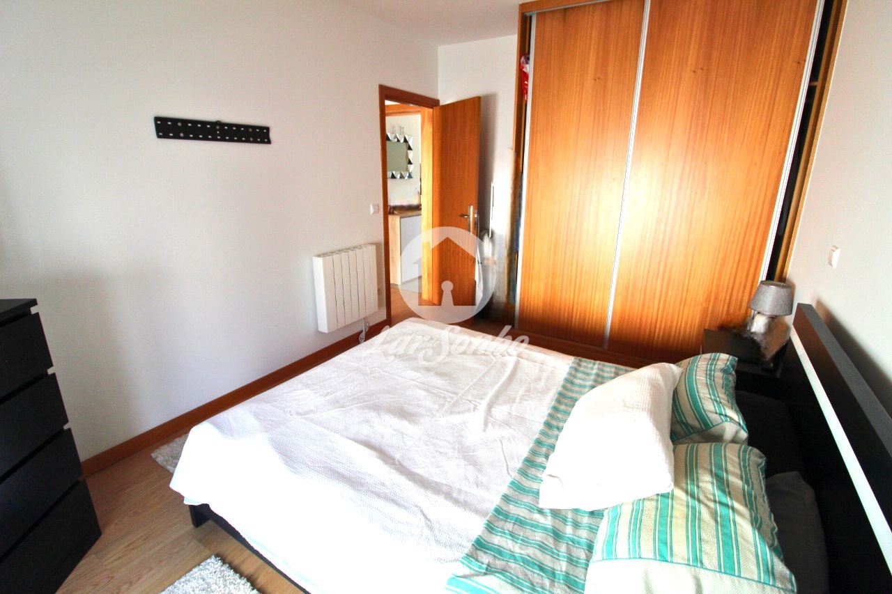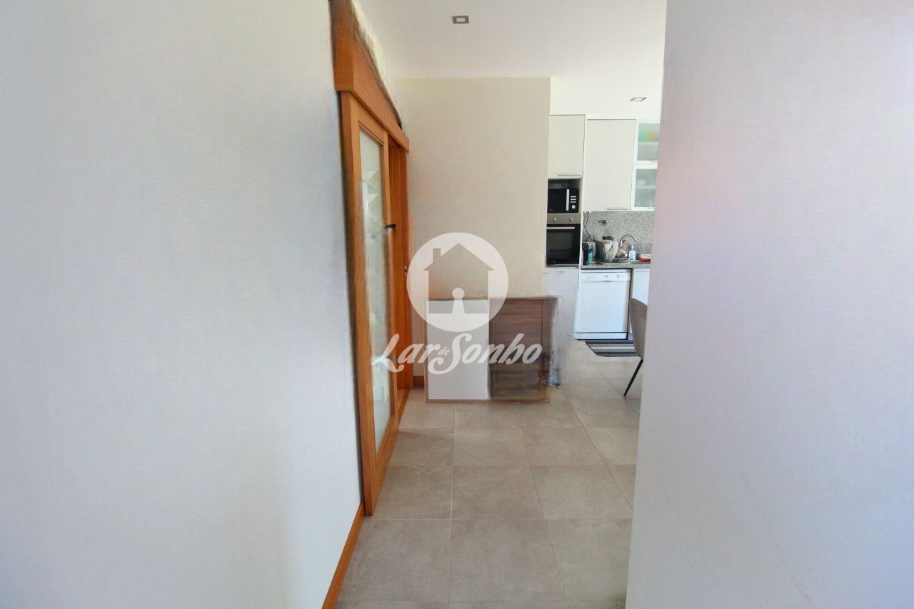 No interior, destaca-se a sala e cozinha em conceito open space, equipada com placa, forno e exaustor, dois quartos com armários embutidos e soalho flutuante, e uma casa de banho completa com acabamentos modernos.