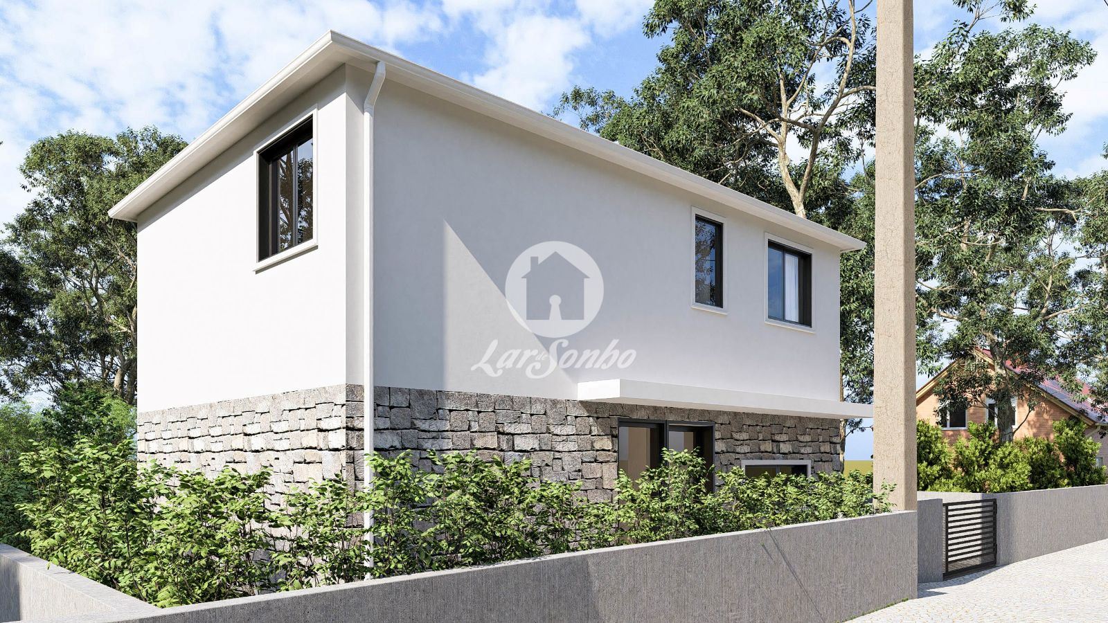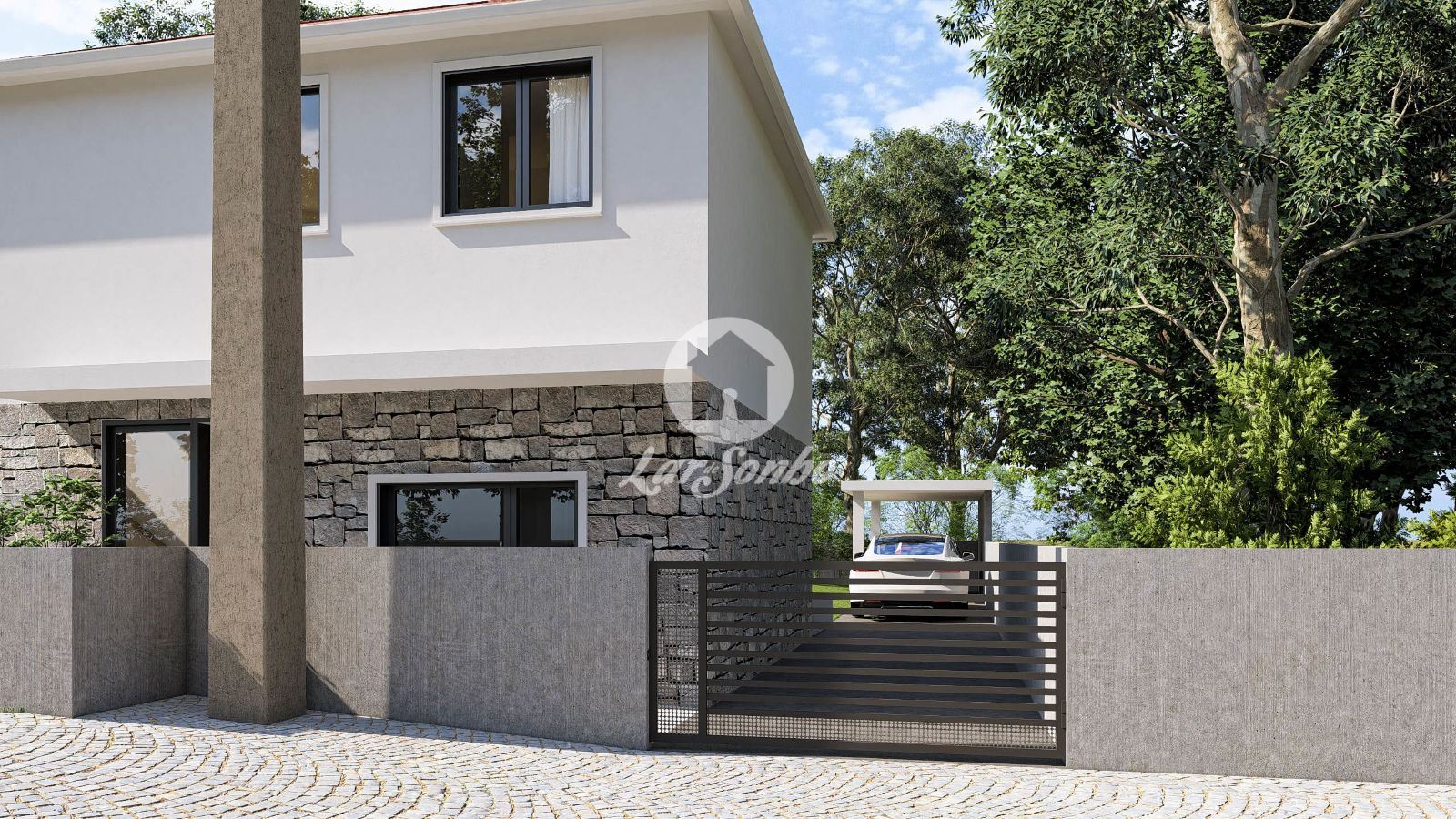 Com uma área de construção harmoniosamente distribuída e inserida num lote de 280 m², o exterior convida a desfrutar dos pequenos prazeres da vida: um jardim perfeito para momentos em família, convívios com amigos ou simplesmente relaxar ao final do dia. A moradia dispõe ainda de garagem e espaço adicional para estacionamento, incluindo ponto de carregamento para veículos elétricos — um detalhe que acompanha as exigências do futuro.